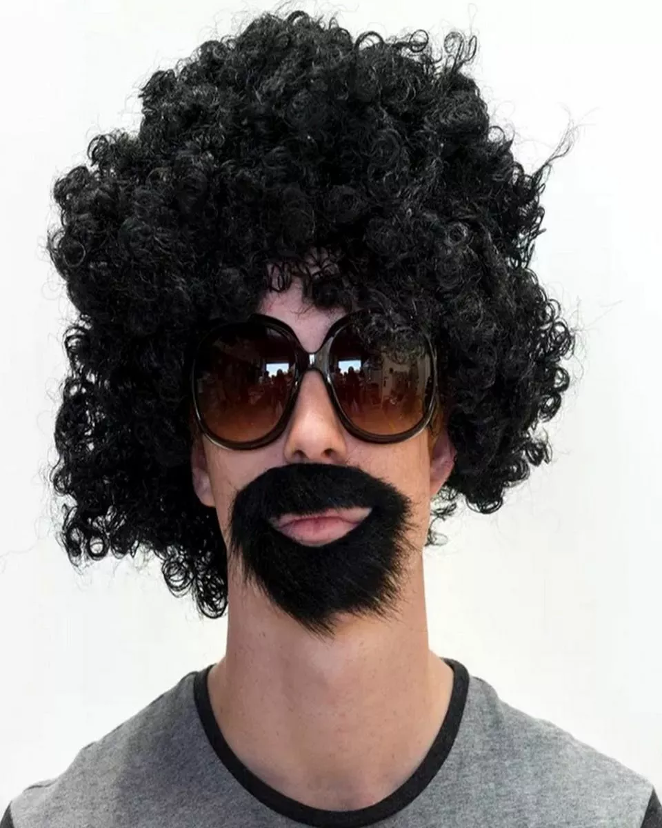 This brilliant 70’s Disco Dirtbag kit is ideal for any man looking to dress as a 70s disco hunk! This awesome kit comes complete with a tight curled, black afro, glasses, andย 70s styled black moustache and beard