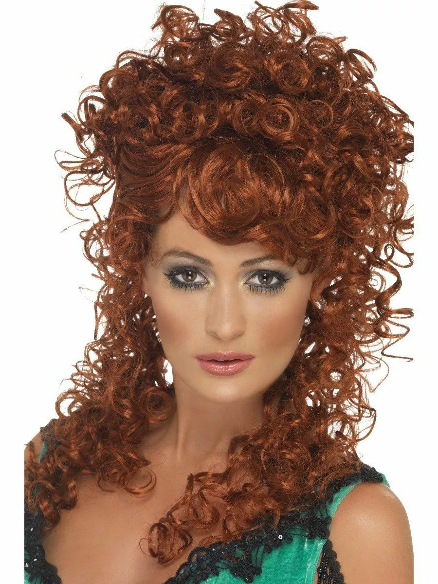 hairdo now with this Saloon Girl Wig! It’s auburn, long and curly, sure to grab