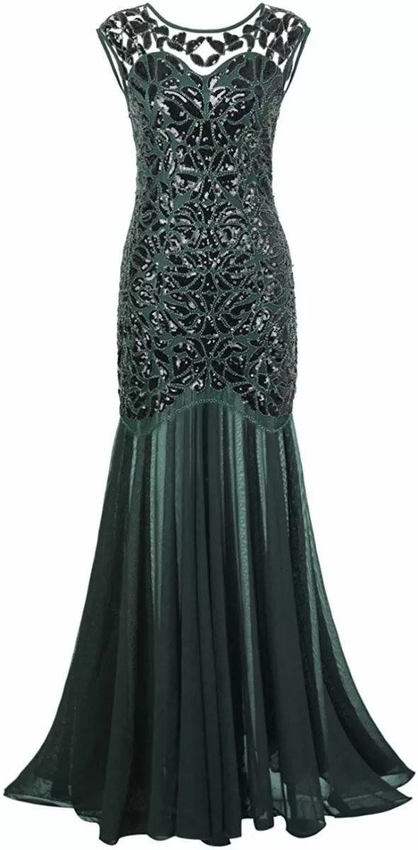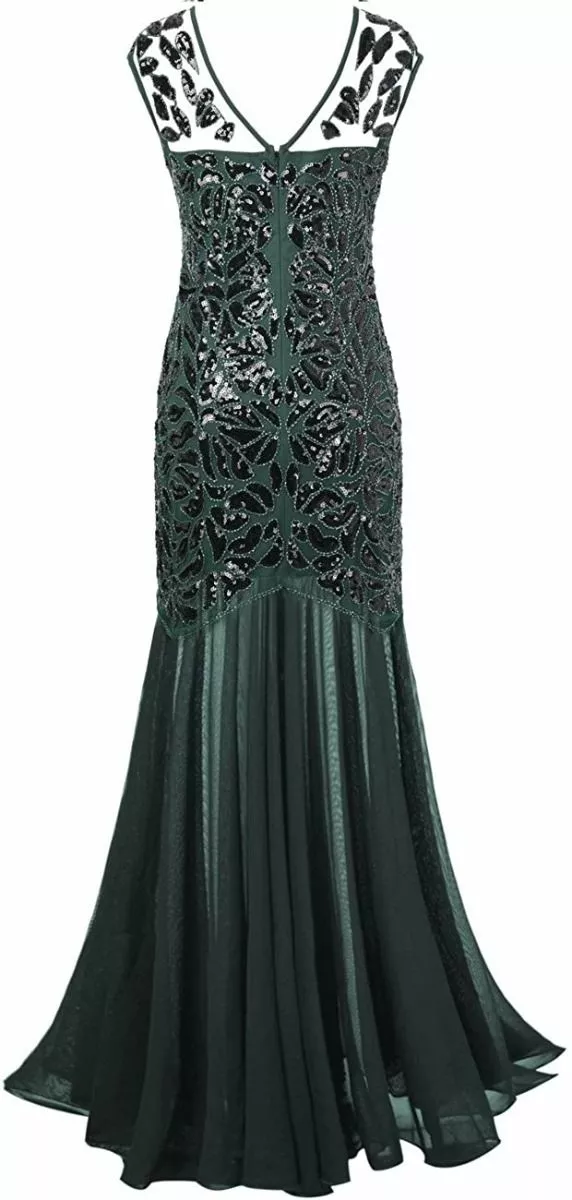 Black Green Evening Dress Gatsby Womens Costume