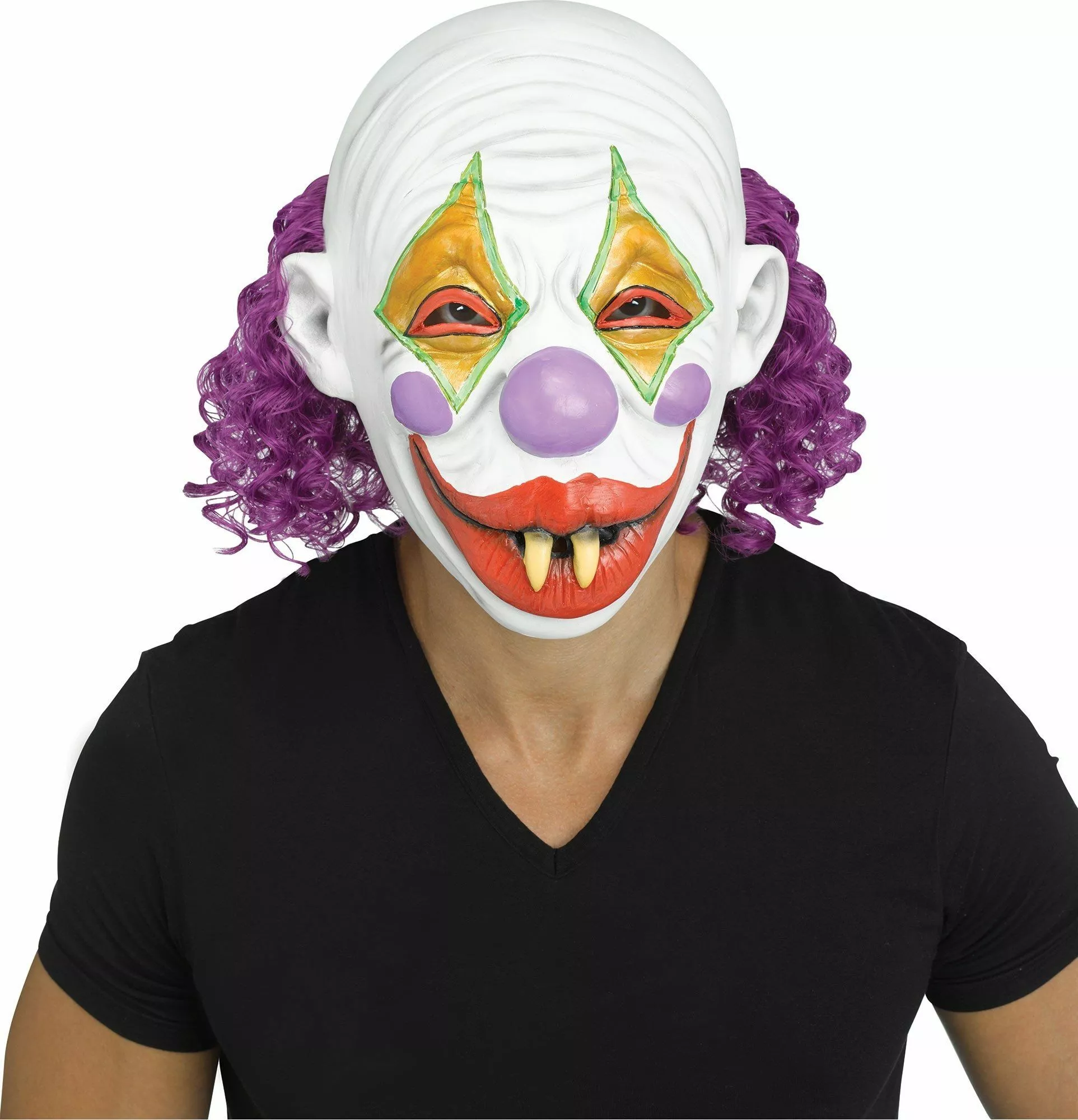 In this mask, you’ll just be Clowning around. This chilling clown mask features an unforgettable face. With traditional clown makeup, but an evil spiked grin, we all know this clown has more than just making balloon animals on his mind.