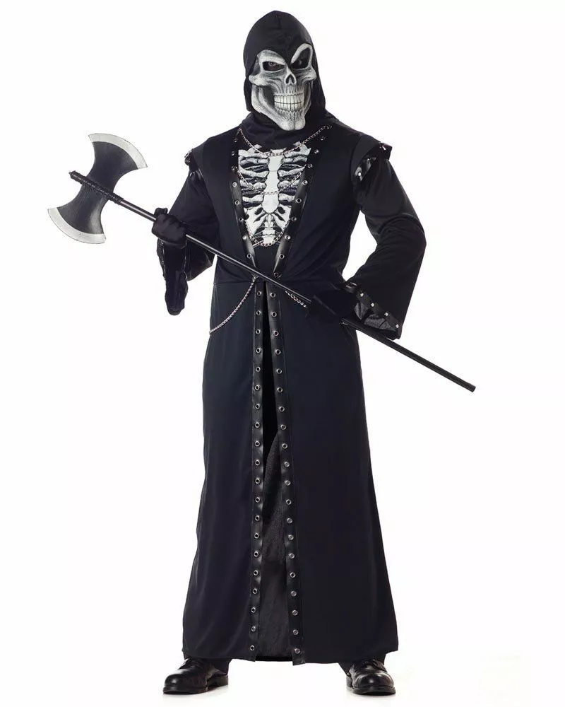 - Package includes: Robe W/ Gromments, Chain Trim, And Character Screen Print, Skull Mask, Hood