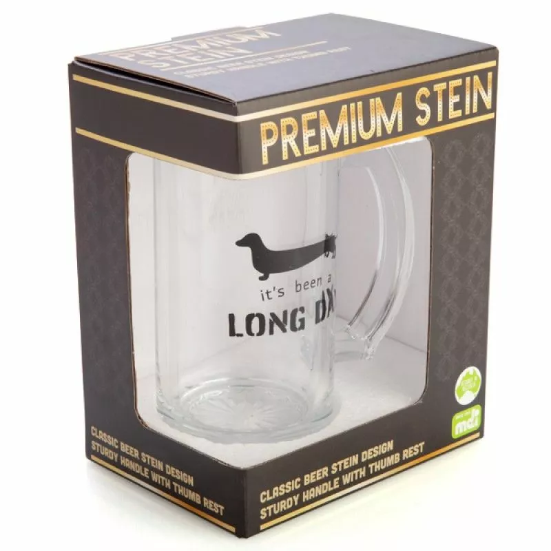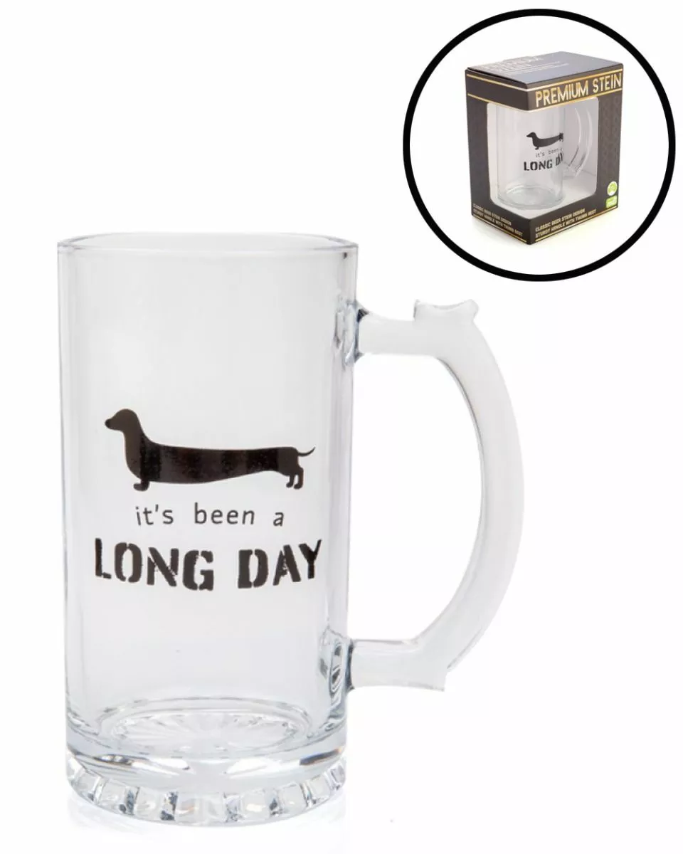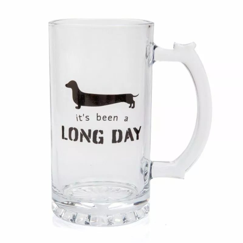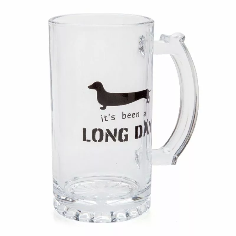 Sturdy glass beer stein featuring everyone’s favourite sausage-shaped pup