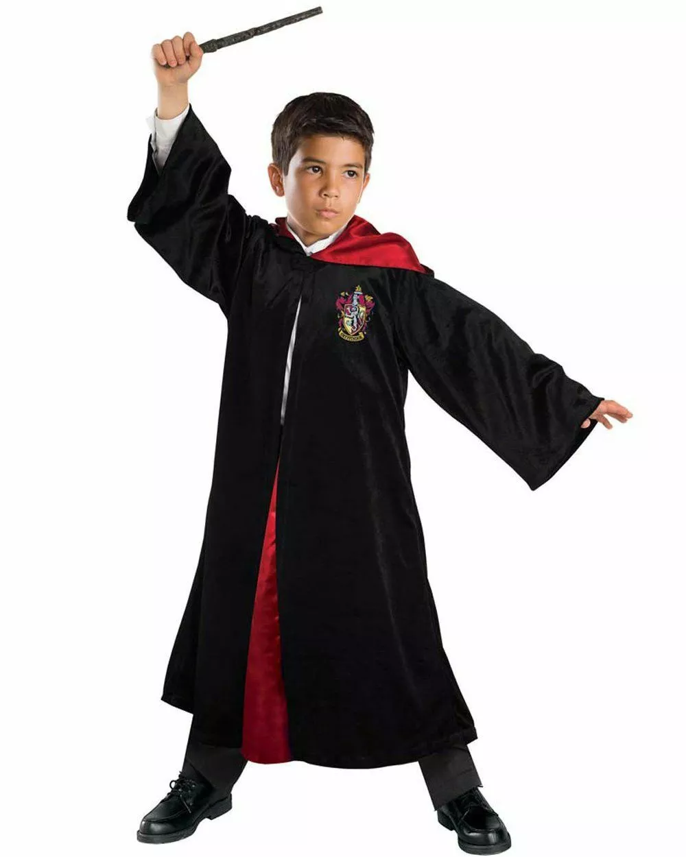 This costume comes with a full length velvet feel black hooded robe featuring a red satin lining of the hood and lapels. The Gryffindor house logo is printed on the chest and the robe has a velcro clasp fastening. Perfect costume for Book Week.