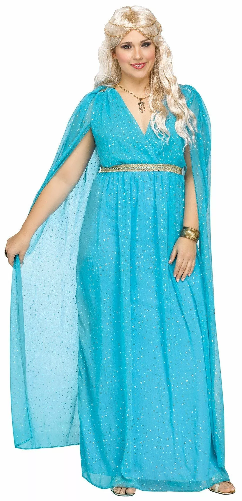 The Divine Goddess Women Costume brings a blue and gold gown.