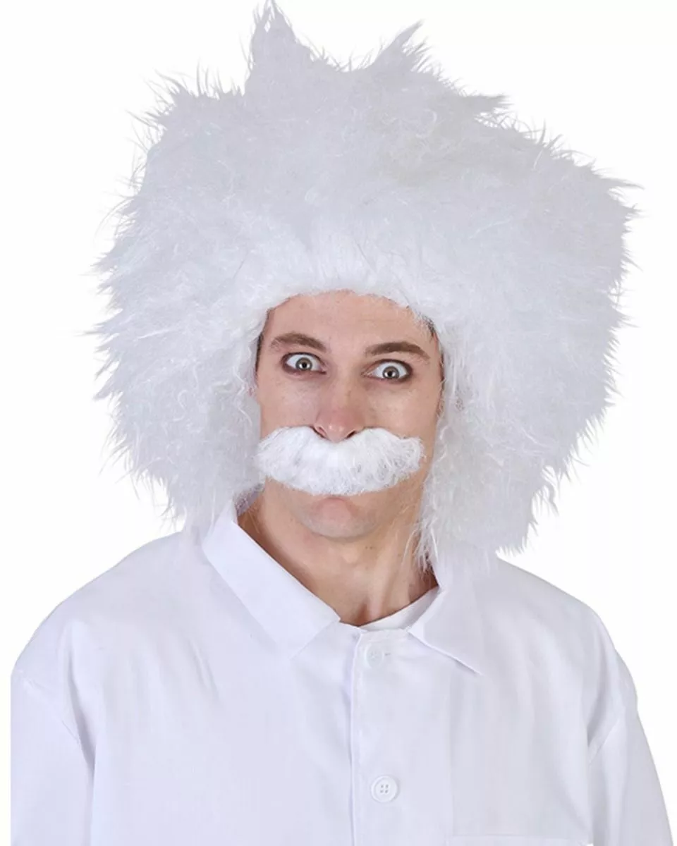 Albert Einstein is known as one of the greatest scientists of all time. But did you know that he was also quite the ladies’ man? It had to be the hair. You can dress up as this famous theoretical physicist with this white E=MC2 costume wig and moustache.