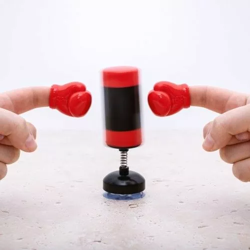 Includes: 1 boxing bag with suction base and a pair of finger boxing gloves.