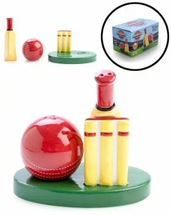 Salt and pepper shakers shaped like a cricket ball and bat!
