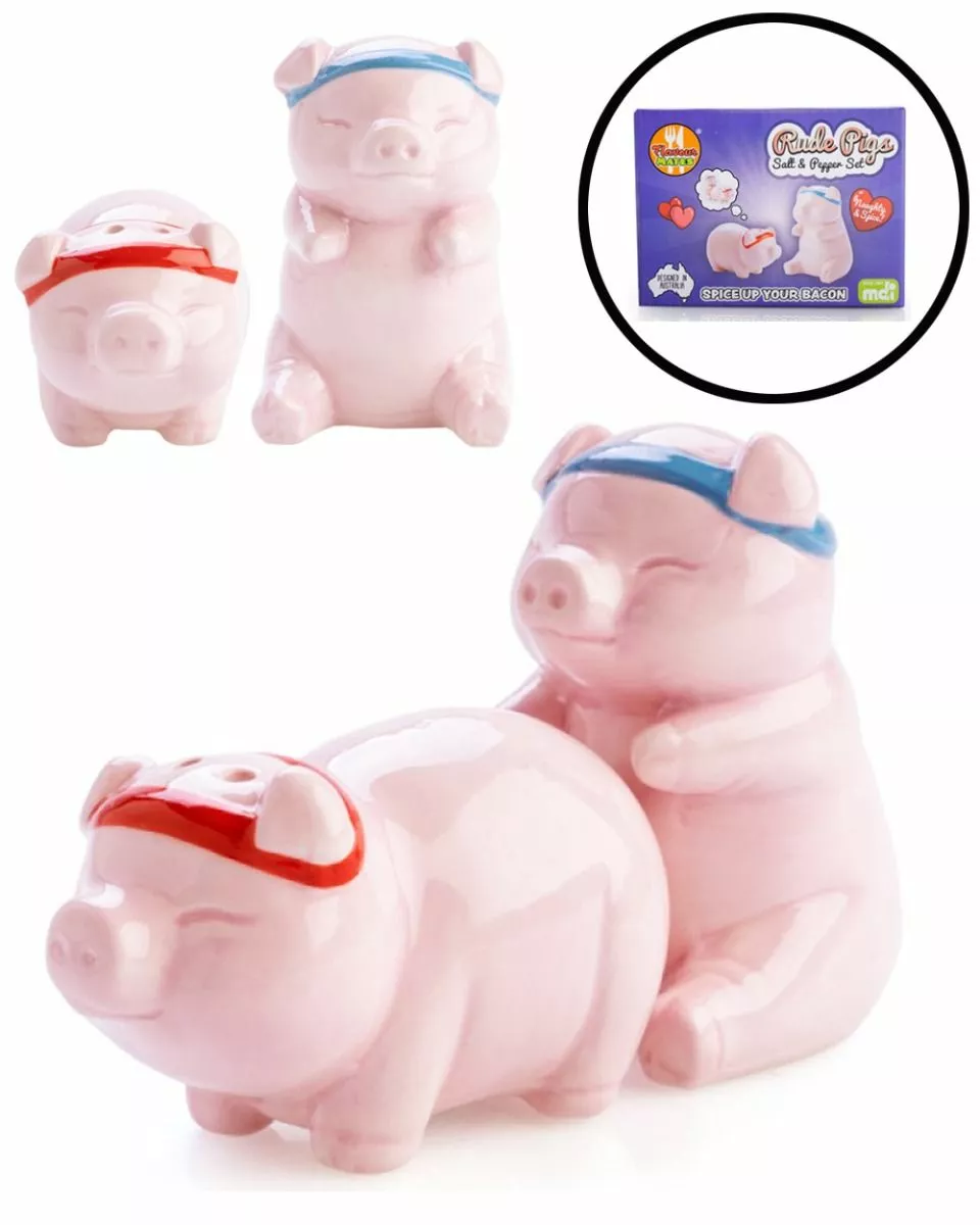 Cheeky salt and pepper shakers shaped like a pair of pigs