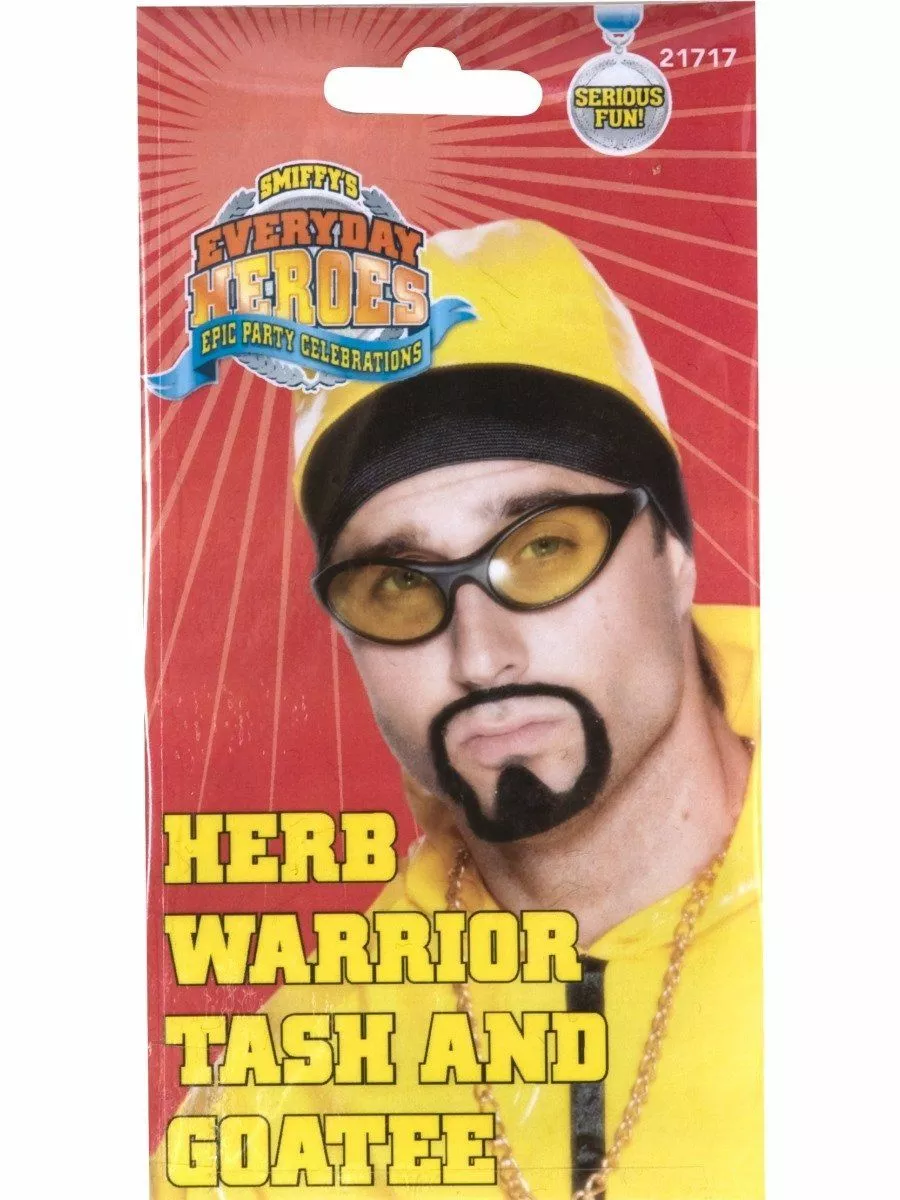 The famous herb warrior, Ali-G, rocks out his goatee to match his tracksuit, and this accessory, the the herb warrior tash and goatee beard set, will get you being hilarious all night!