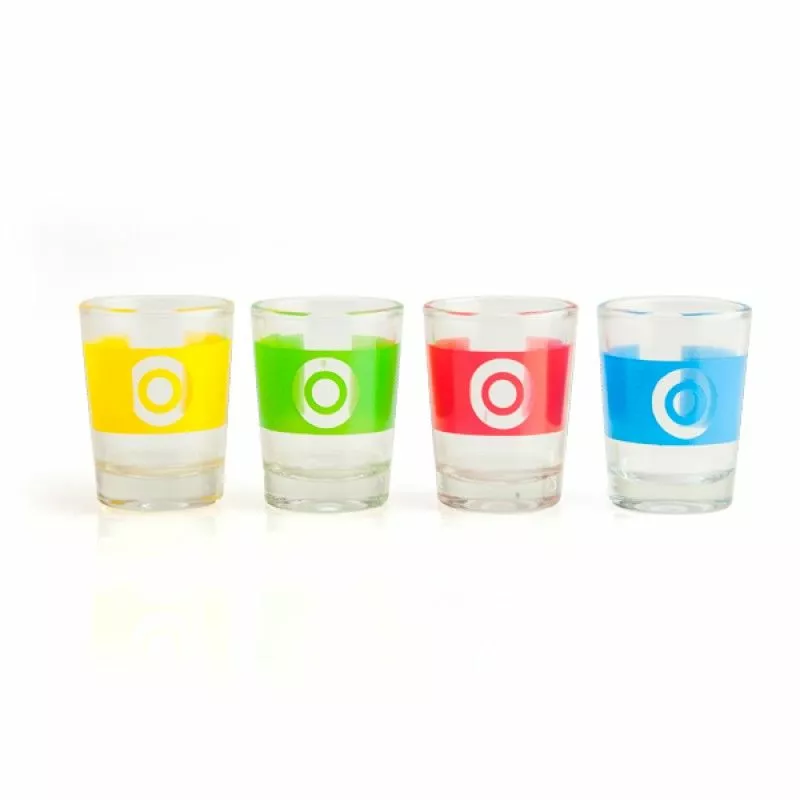Set includes: 1 wire stand and wand, 4 shot glasses