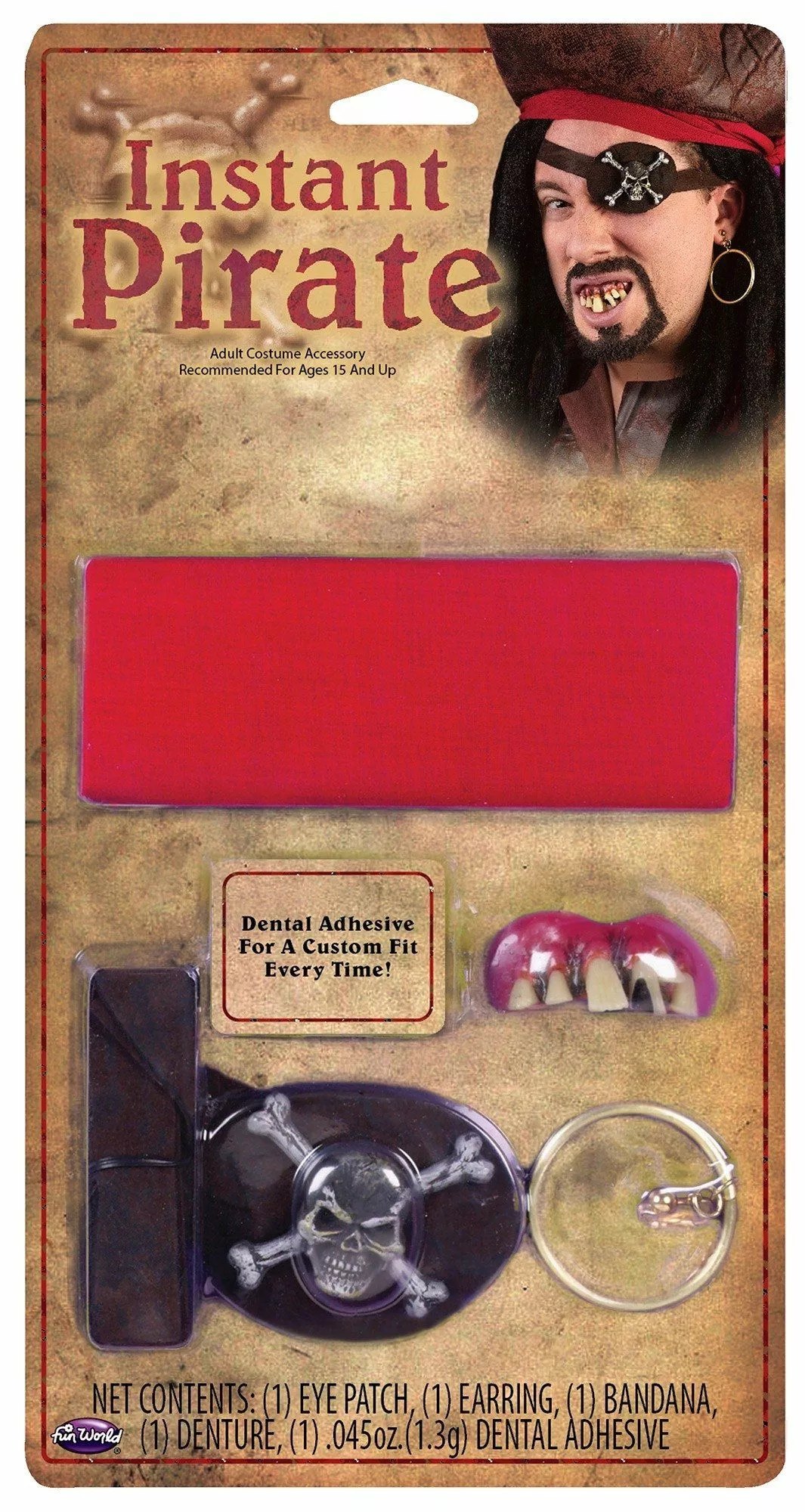 Pirate – Package includes: eye patch, earring, bandana, dental adhesive