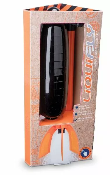 LiquiFly Deluxe Kit includes a set of fins to keep your bottle rocket on course, a plastic bottle rocket, a high launch and low launch valve, 6 Metres of hose, release fittings and a pump optimised for use with the Liquifly kit.