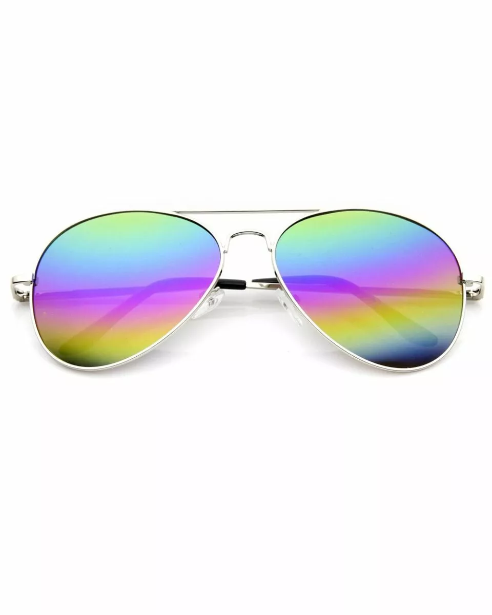 Mardi Gras Rainbow Aviator Reflective Glasses
