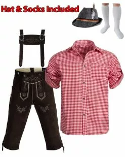 Dark Brown Red Shirt Longer Pants Oktoberfest Mens Costume