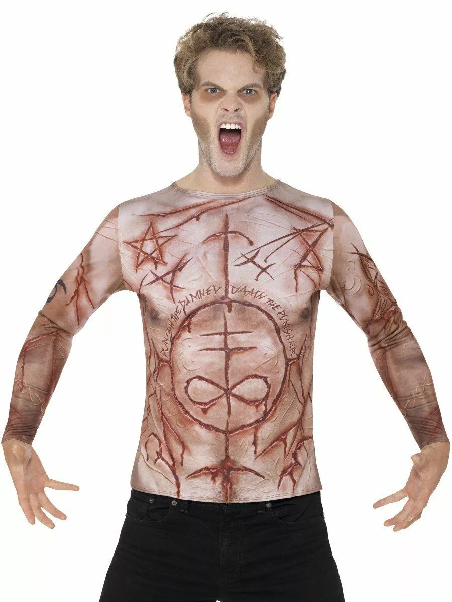 The Flesh Coloured Long Sleeved Top features the Sublimation Print on Both the Front and Back with Various Bloody Cuts and Scars Throughout.
