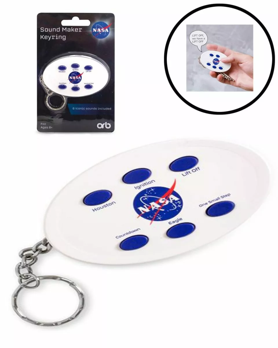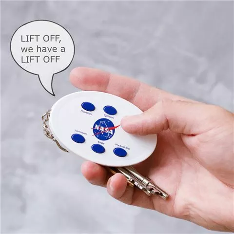 This keychain is not only a cool addition to your keychain, it can also make sounds. The NASA keychain has 6 iconic sounds: ‘Houston’, ‘Ignition’, ‘Lift Off’, ‘Countdown’, ‘Eagle’ and ‘One Small Step’.