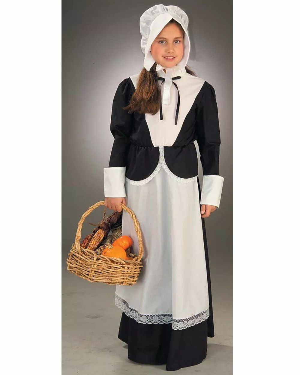 Black dress has white center-front inset, apron panel & sleeve cuffs