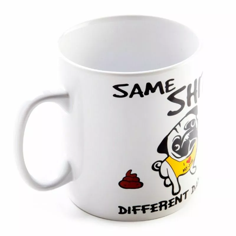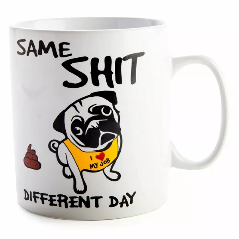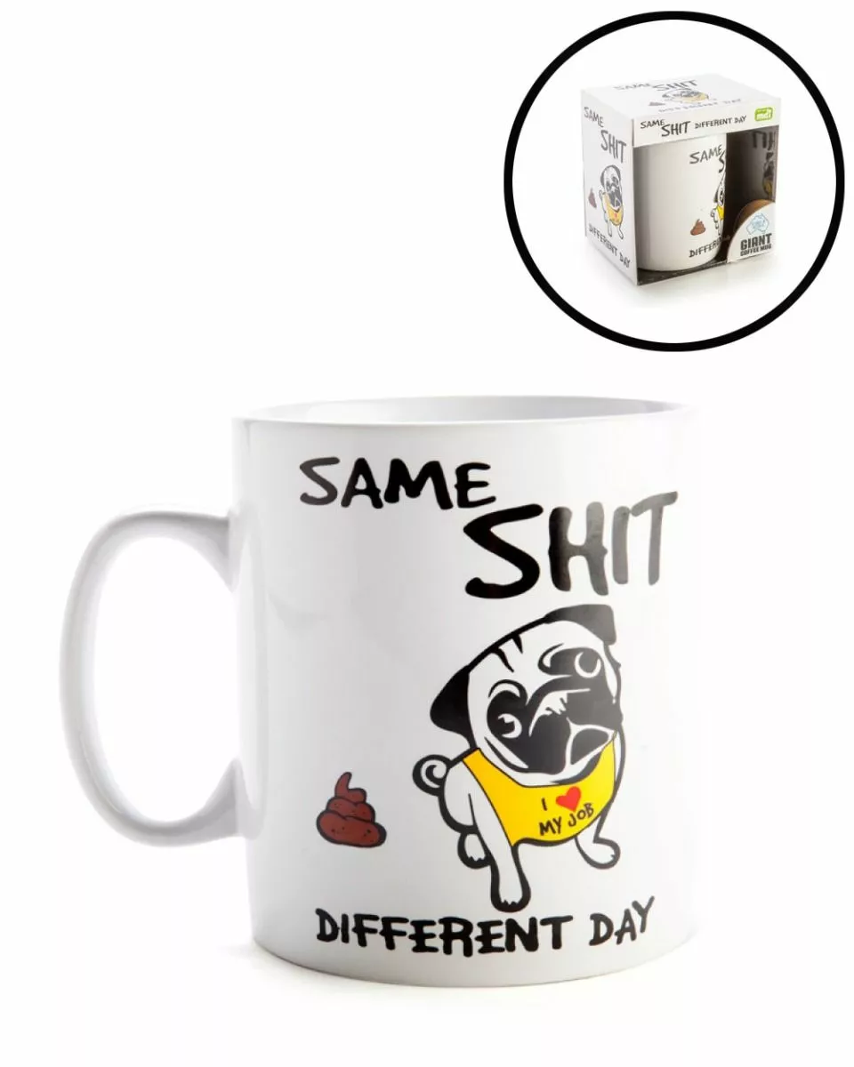 Featuring a cute little pug on a real big mug to get you through another one of those days