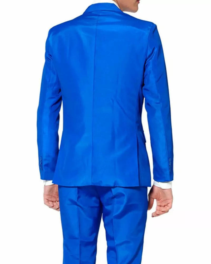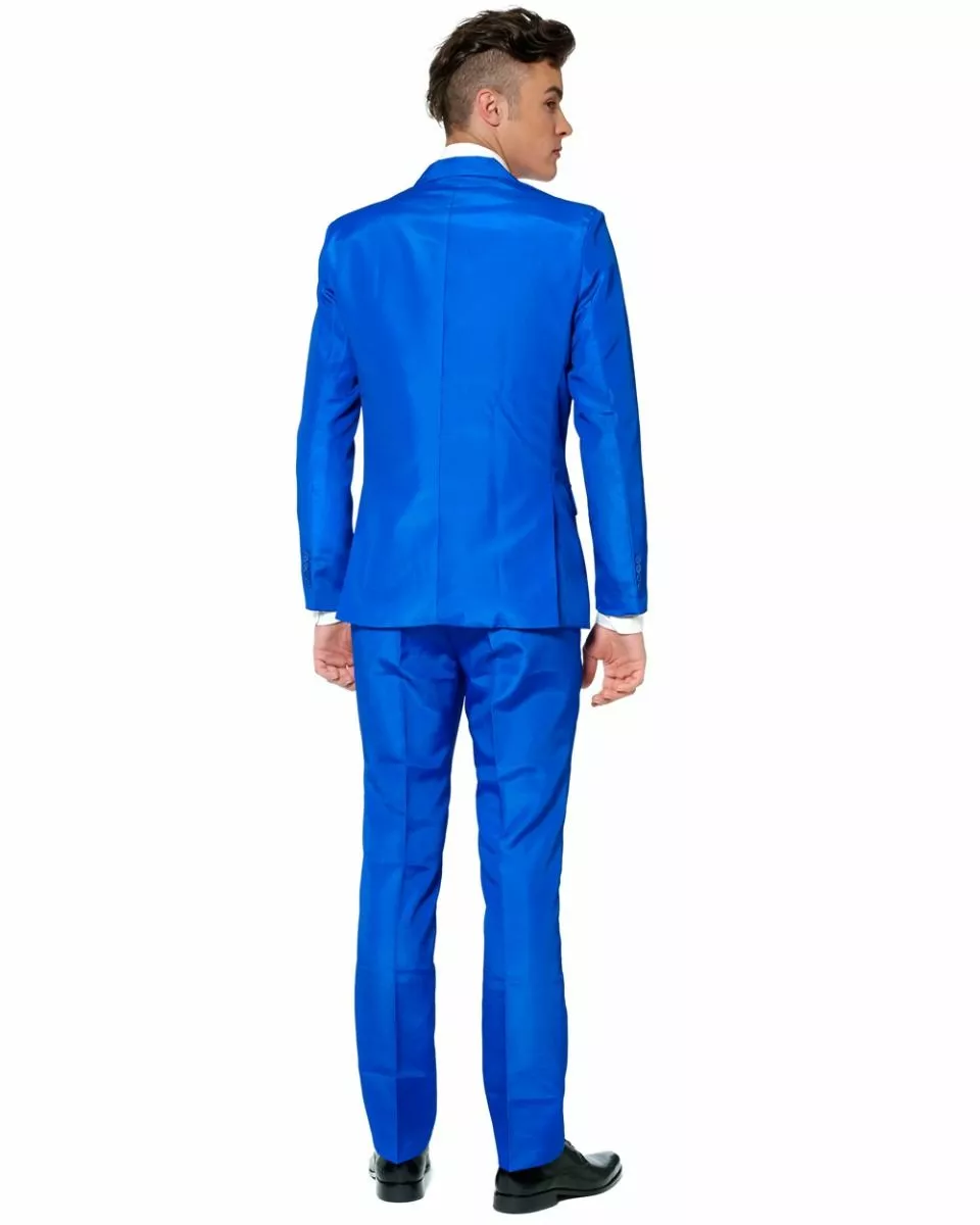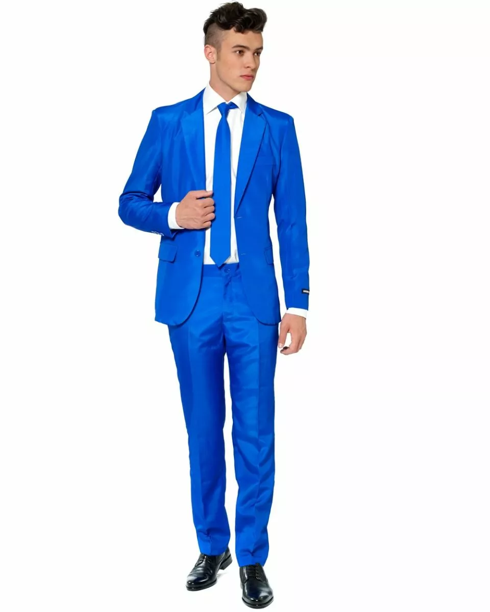 Why go for a boring black suit like everyone else, when you can really show off your attitude with this fierce bright blue suit with matching tie.