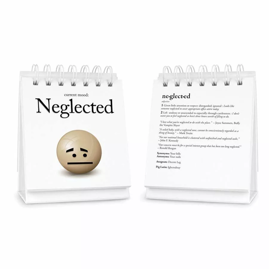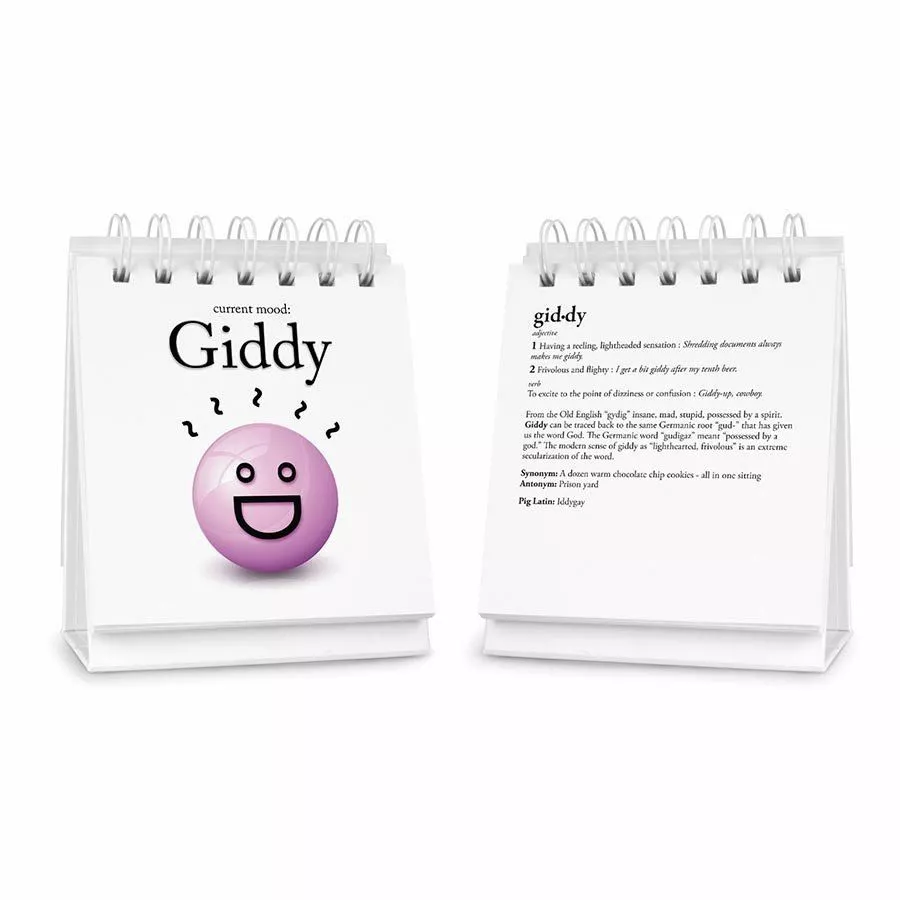 Fair warning for your co-workers Some days the office is like a tea party, other days it’s a lions’ den. That’s why The Daily Mood is a crucial desk-top accessory! It spells out everyone’s demeanor in no uncertain terms. There are 47 moods to choose from, each with its own smiley along with a snarky definition, fascinating facts, and sample sentences. It’s lo-tech “social networking” fun. Individual peggable giftboxes. Design: Carl Mitsch, Fred studio. Concept by Tabitha White
