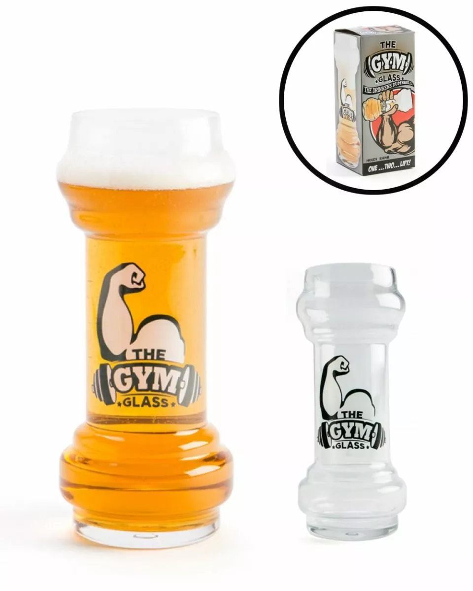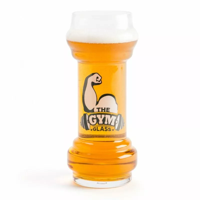 Beer glass shaped like a dumbbell, the classic and classy workout tool
