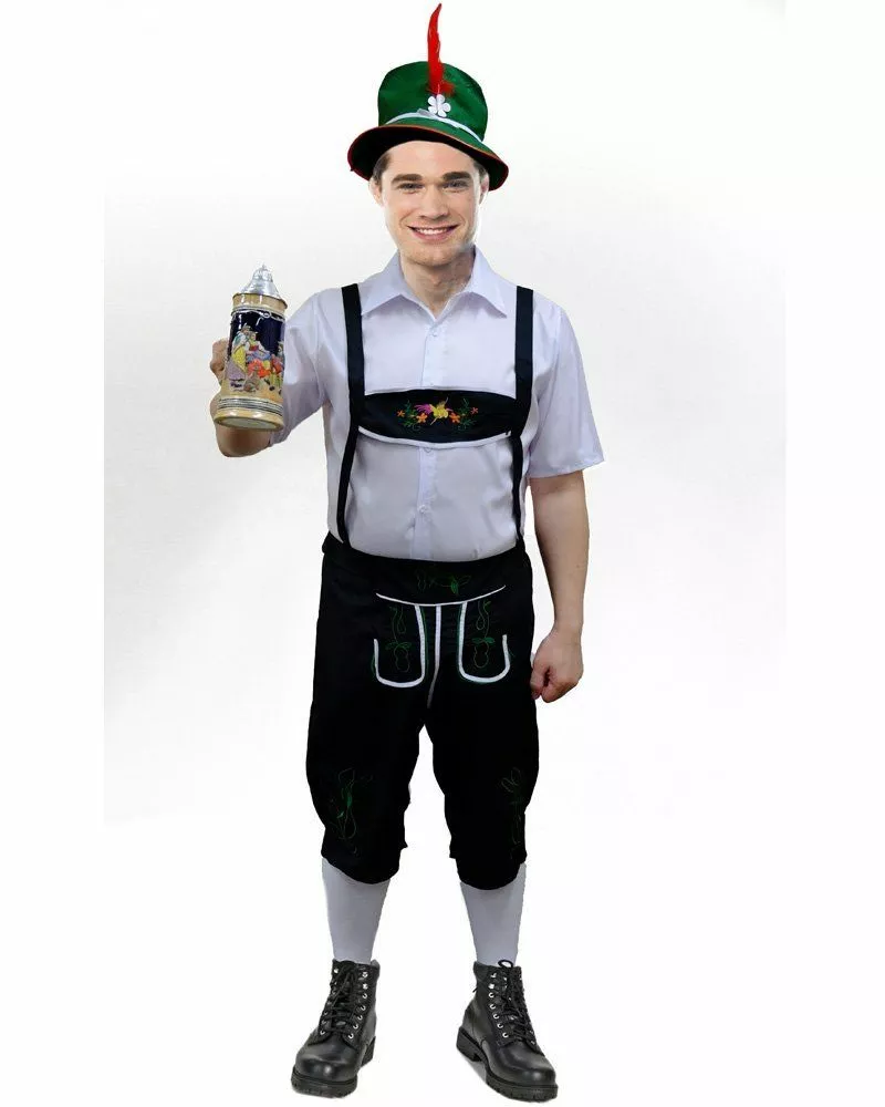 Includes: Lederhosen (Pants have side pockets), Shirt, Hat, socks