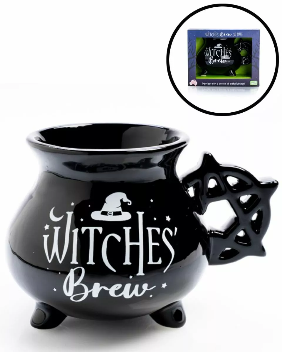 Striking pentacle handle and purple drips on the rim – like you’re brewing a peculiar potion!