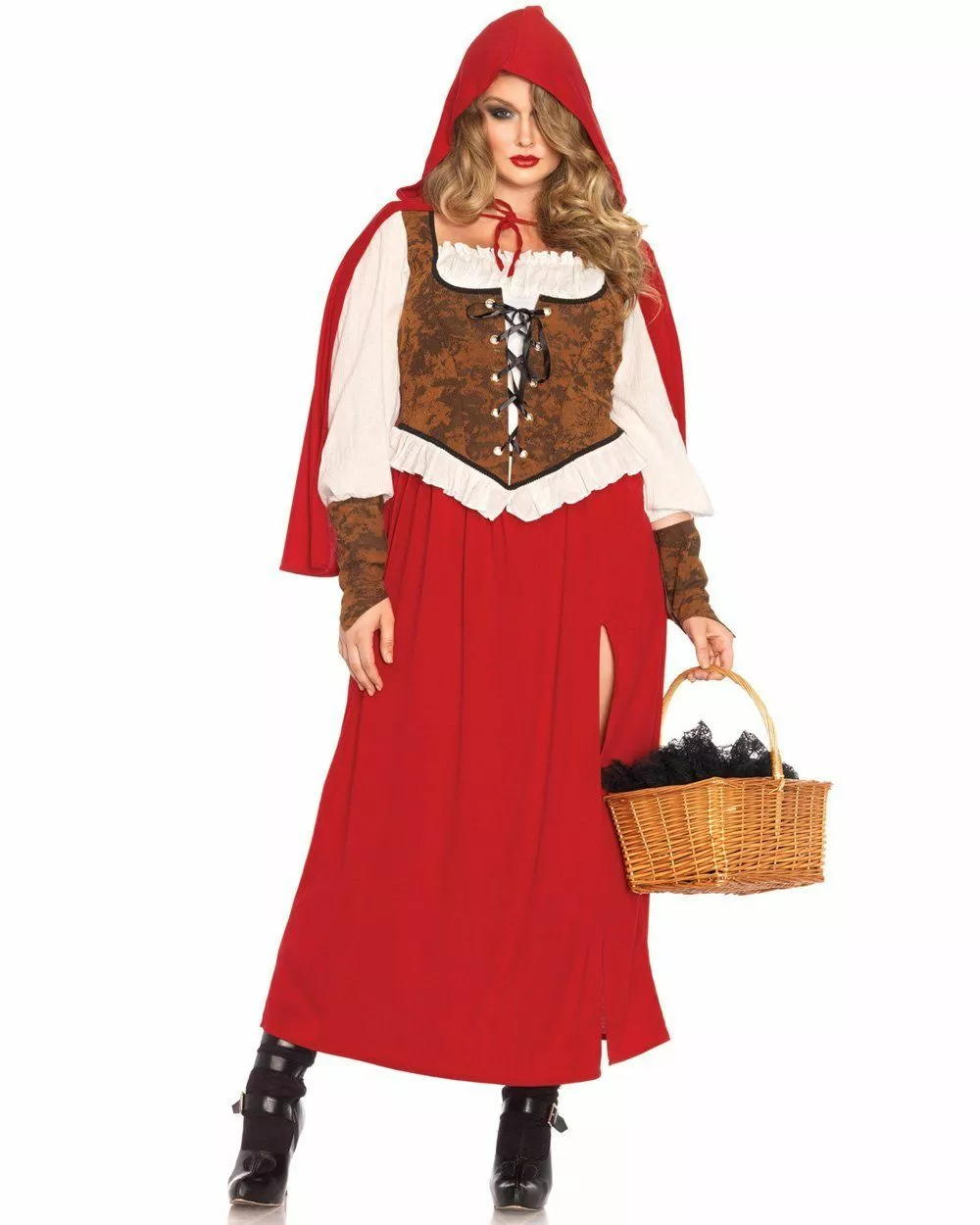 Cape, skirt and bodice back: 100% polyester; peasant blouse: 100% cotton; vest panels: 100% polyester with 100% rayon flocking