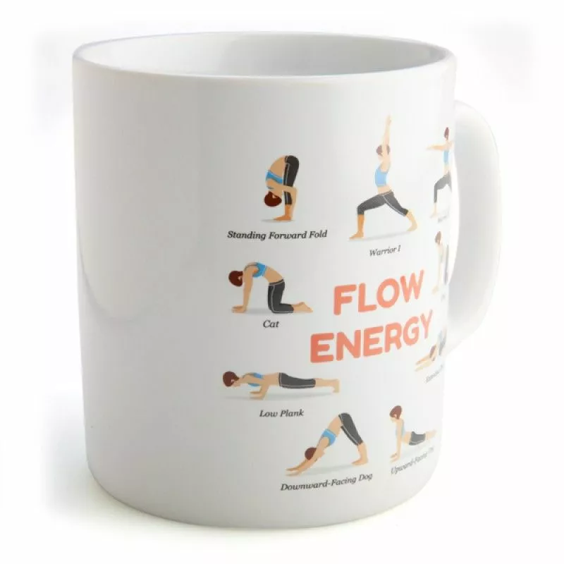 Double-sided design with phrases “flow energy” and “keep calm” on each side